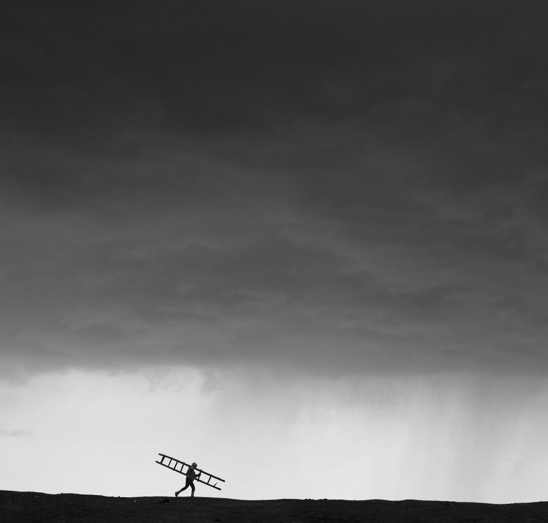 Man has always been perfectionist and creates unique dreams for himself. He will try to achieve his goals and seek a way to reach his dreams; but this way is full of ups and downs and incidents. In this image, we have two main elements; man and tree and another important element is ladder. Each of them has their own concept here. Man is a symbol of perfectionism and the tree is a symbol of dream. The ladder is a symbol for helping to reach the goals. Ups and downs are a symbol of a hard way ahead. The light from the left to the image is promising hope.