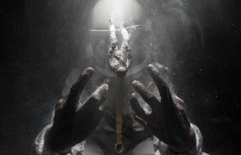Космонавт попадает в бездну космоса, далеки от любой надежды, навсегда потерянной в пустоту черноты и неизвестности. Шокирующая правда поражает его совесть с полной раздутой, бросая его из себя, более широкую перспективу его существования. Черные пятнистые руки, боль и сожаление. Больше никто не виноват, кроме него самого, он сам выбрал этот путь! увеличивая страшное чувство одиночества и потери. Ему видеться отражение его близких на стекле шлема! Это его рука, это его тело, они его семья, он наблюдает за собой, прежде чем переходить во что-то другое. Дрейфующие падения, плавающие в невесомости.