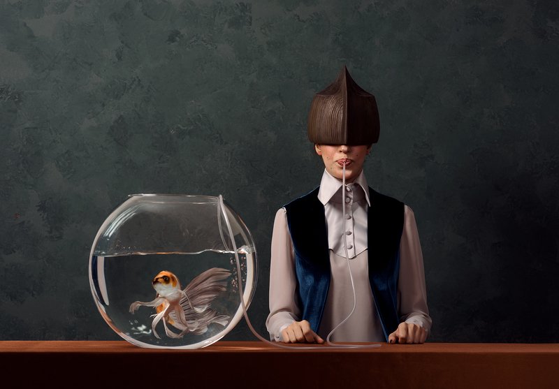 These photos represent a scenario and a story that had preoccupied my mind for days. To be honest, I am not very interested in the aesthetic view of art. Quite the contrary, I am very passionate about the imaginative view, and I always try to make sure that there is a meaning behind my photos. Hence, in this project, I attempted to portray two parallel and simultaneous lives, the life of the fish and the life of the human. The first photos have an aesthetic view, but then the story begins, and the meaning starts to flow.