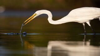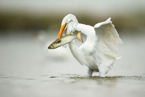 Momento en el que la garcita azulada saca del agua un orillero para alimentarse y como no le alcanza la fuerza de sus patas para elevarse comienza a aletear para tomar impulso hacia arriba.